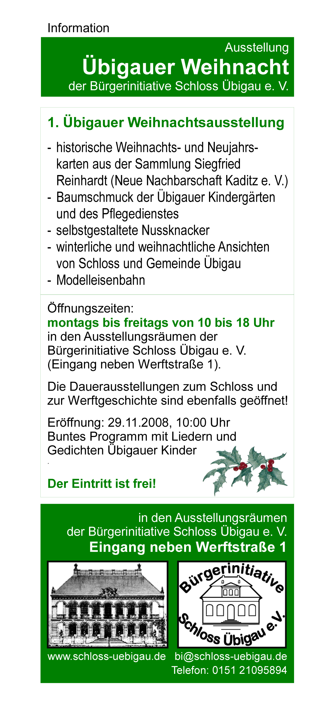 Bürgerinitiative Schloss Übigau ...... Ausstellungen. Übigauer Weihnacht - Plakate